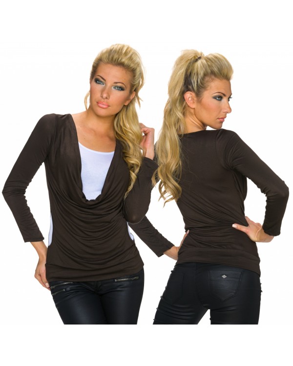 Majica v videzu 2 majic, temno rjava barva z belo. Majica je velikost Uni in sestava 95% viskoza in 5% elastan.
